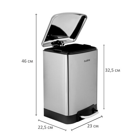 Мусорное ведро с педалью LAIMA ULTRA – удобство и чистота без усилий! Специальное покрытие предотвращает появление отпечатков пальцев. Отличный выбор для дома и офиса. Корпус и крышка ведра изготовлены из матовой нержавеющей стали SS410, на которой не остаются отпечатки пальцев. Ведро устойчиво благодаря антискользящим вставкам. Оборудовано удобной педалью для открывания, позволяя вам выбрасывать мусор, не прикасаясь к ведру. Благодаря встроенному доводчику крышка закрывается плавно и бесшумно. Крышка плотно прилегает к ведру, препятствуя распространению запахов. Внутреннее съемное пластиковое ведро на 6 л имеет специальное отверстие на задней стенке для фиксации мусорного пакета. Объем рекомендуемого мешка – 12 л. Мусорное ведро в матовом серебристом цвете имеет компактные размеры (32,5х22,5х23 см) и отлично впишется в любой интерьер!