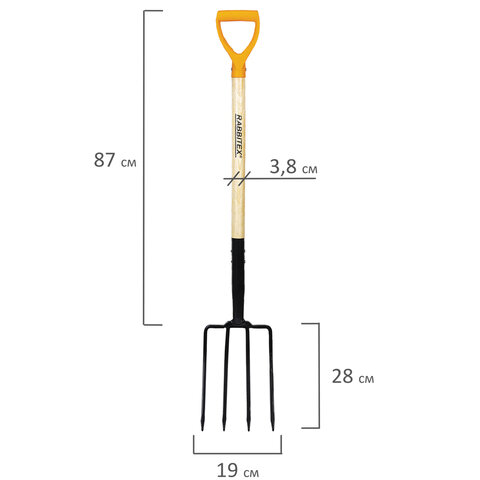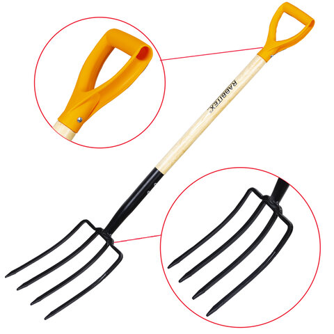 Вилы копальные стальные RABBITEX "STANDARD" – незаменимый инструмент для вашего сада и огорода. Применяются для вскапывания и рыхления почвы, выкапывания корней и корнеплодов, работы с травой, компостом, сеном, а также для аэрации грунта. Стальные копальные вилы RABBITEX "STANDARD" с черенком из дерева твердых пород выполнены из закаленной легированной стали. Благодаря высокому качеству материалов и продуманному эргономичному дизайну прослужат вам долгие годы. Максимальная надежность обеспечивается рабочим полотном из стали, прошедшей специальную закалку. Инструмент способен выдержать любые нагрузки при длительной работе без потери прочности. Вилы оснащены 4 острыми стальными зубьями, расположенными под оптимальным углом для эффективной работы с любыми материалами, а также удобной рукояткой универсального размера, позволяющей работать как в перчатках, так и без них. Надежное соединение на заклепках, оптимальные размеры рабочей части, удобная длина и прочный черенок сделают вашу работу проще и продуктивнее. Вилы упакованы в пакет, который защищает изделие от царапин и сколов, а также помогает сохранить высокое качество товара. Основные характеристики: Размер рабочей части: 19х28 см. Материал: закаленная сталь. Материал черенка: дерево. Диаметр черенка: 38 мм. Общая длина изделия: 115 см. Вес: 1,75 кг.
